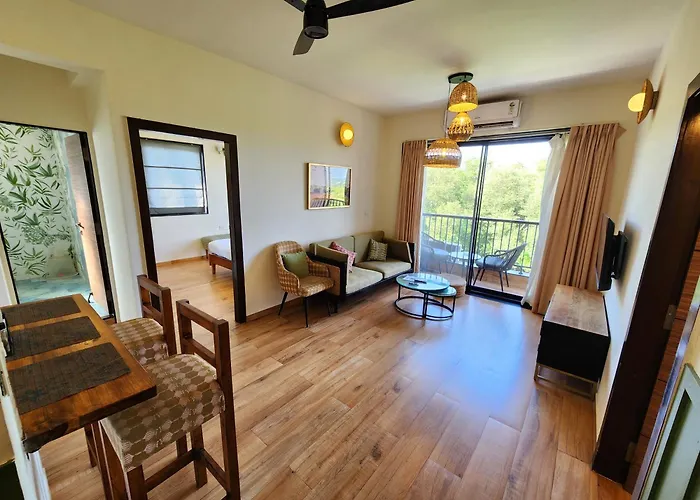 To enjoy your vacation in Candolim, stay at the 92 m² Candolim 2Bhk Apartment With Mangrove View & Pool - Ideal For Families And Groups, which is 3.4 km from the Rocky Beach and about a 10-minute ride from the restored 16th - century Reis Magos Fort. Wi-Fi and complimentary private parking are also available at the apartment.